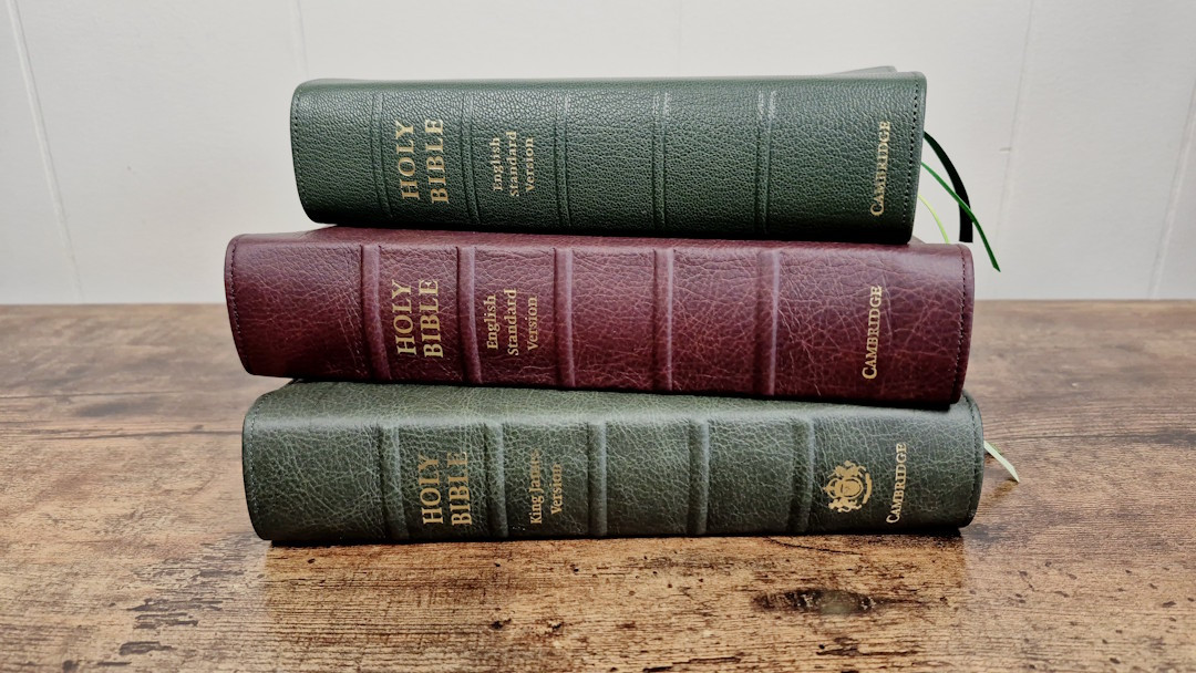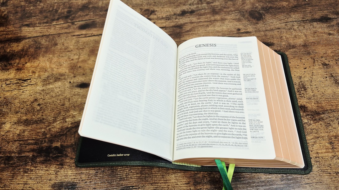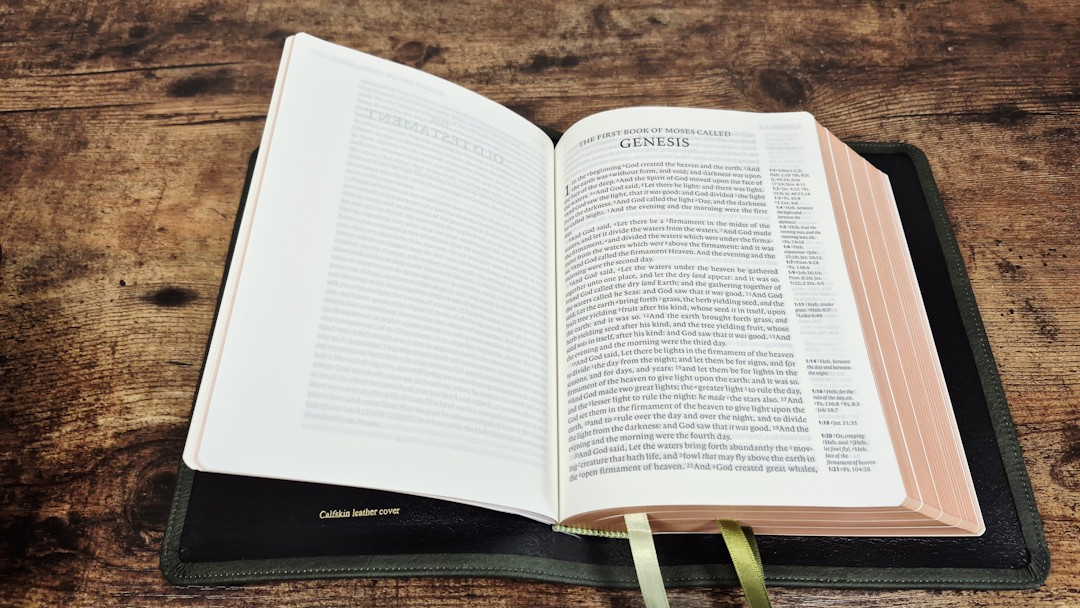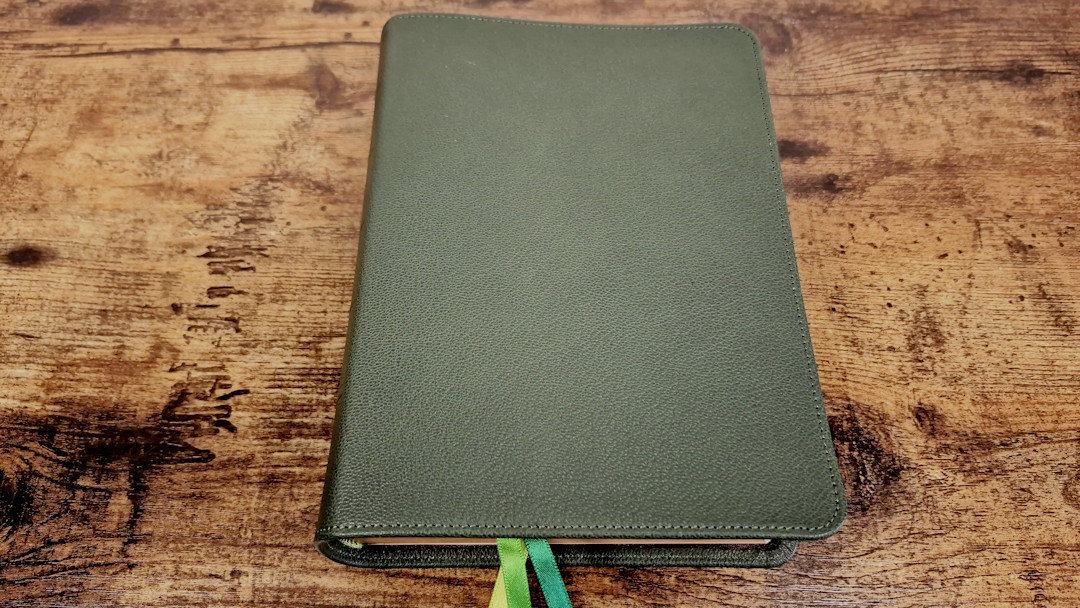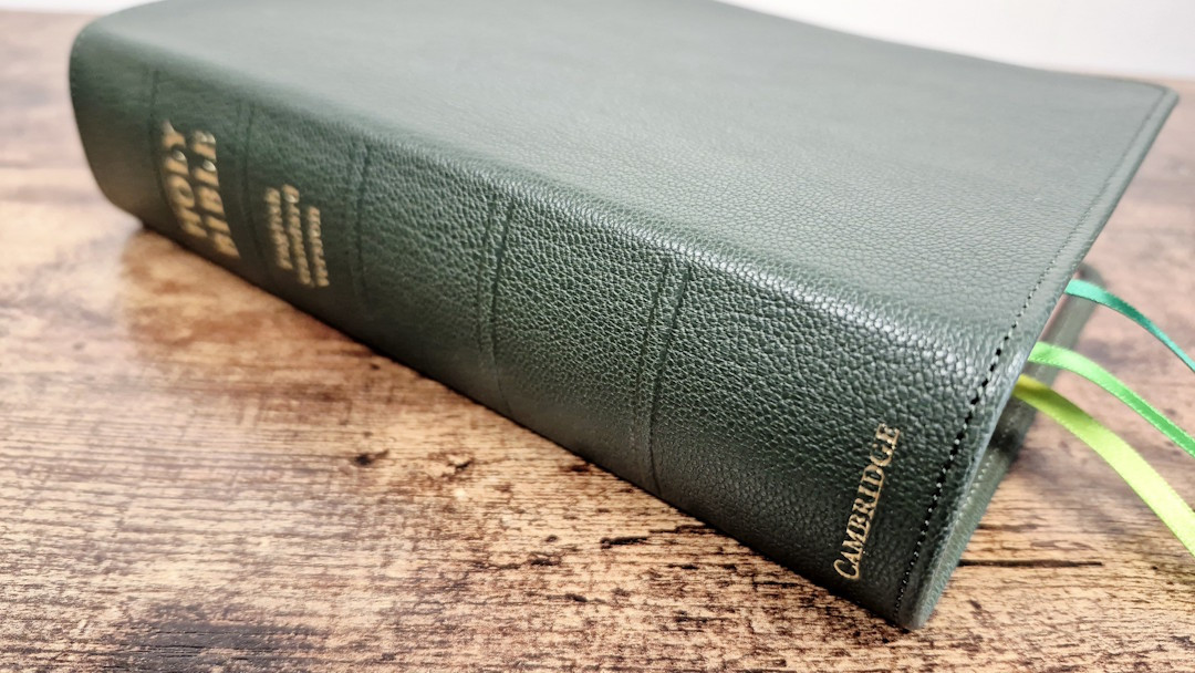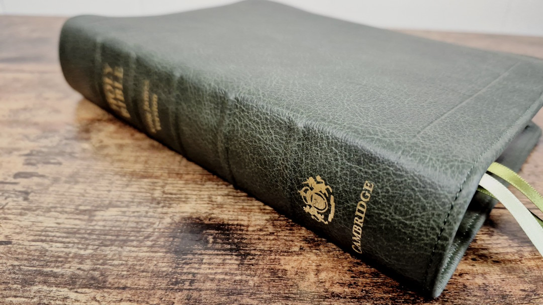 The Cambridge Clarion is one of my favorite series of Bibles. Until now, the premium cover has only been available in black goatskin with a synthetic liner. Cambridge has now produced the ESV and KJV in a buttery-soft calfskin with a full yapp and a leather liner. They’ve also produced the ESV in a green goatskin with a leather liner. All three have upgraded ribbons. The 1769 KJV has 28GSM Indopaque paper, while the 2016 ESVs have 32GSM Primabible paper. I will review the covers of all three editions, printed in the Netherlands by Jongbloed.