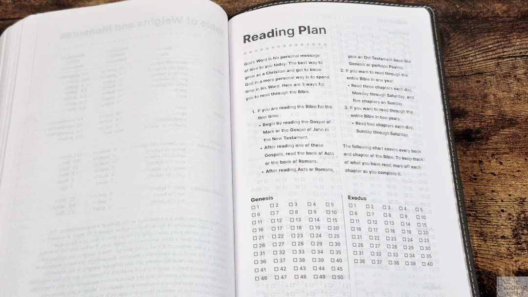 The reading plan was taken from the Student Bible by Philip Yancey and Tim Stafford. It includes a checkbox for every chapter of the Bible, so you can keep track of what you’ve read. Instead of giving you a daily reading, it gives three suggestions that include a few specific books, how to read through the Bible in a year, and how to read the Bible through in two years.