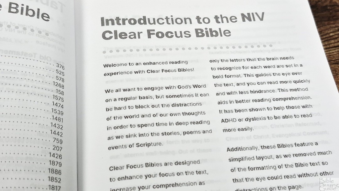 The NIV Clear Focus Bible is an interesting and simple design that places reading first. It’s a great choice for anyone wanting to read the Bible using the Bionic Reading method. I was able to stay focused and even read a little faster. If you have dyslexia or ADHD, the NIV Clear Focus Bible is a good choice.